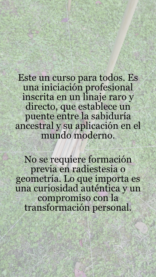 Este curso te guiará a través de un viaje de un año para convertirte en un experto en percepción y equilibrio energético. Aprenderás a diagnosticar y remediar desequilibrios energéticos en entornos y en el cuerpo humano, desarrollando un sistema preciso y enraizado en la geometría sagrada solar y la radiestesia material para transformar la energía sutil.
